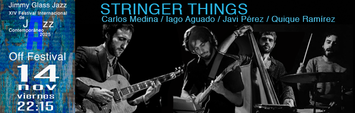 Stringer Things es una formación de jazz contemporáneo integrada por Carlos Medina y Iago Aguado a las guitarras, Javi Pérez al contrabajo y Quique Ramirez a la batería. Su propuesta combina composiciones originales de cada uno de los miembros de la banda, en el que las guitarras dialogan y se entrelazan sobre una base rítmica sólida y dinámica. Un concierto que invita a descubrir una sonoridad actual, refinada y experimental.